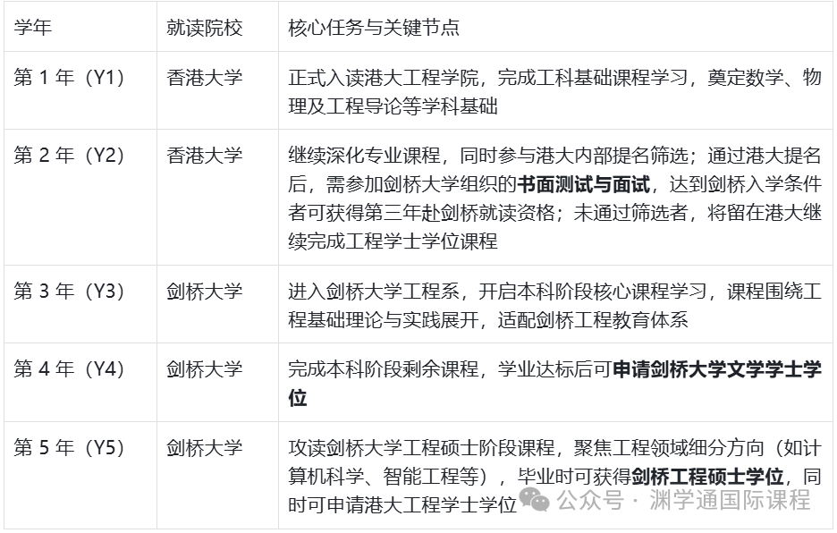 若未通过剑桥选拔或港大初步筛选,学生无需中断学业,可继续留在港大工程学院完成本科课程,最终获得港大工程学士学位。